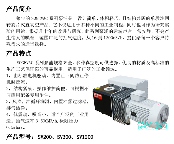 莱宝单级旋片真空泵SV系列